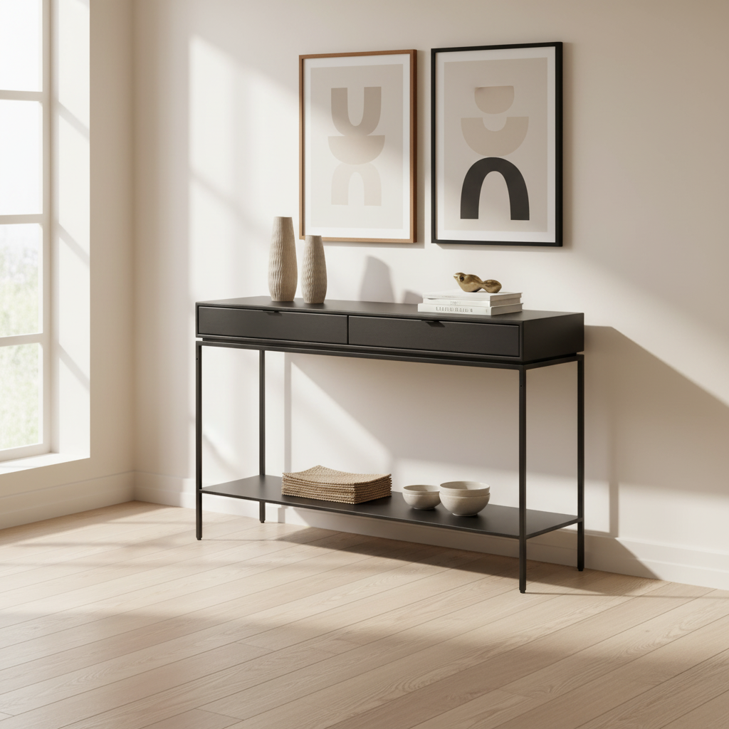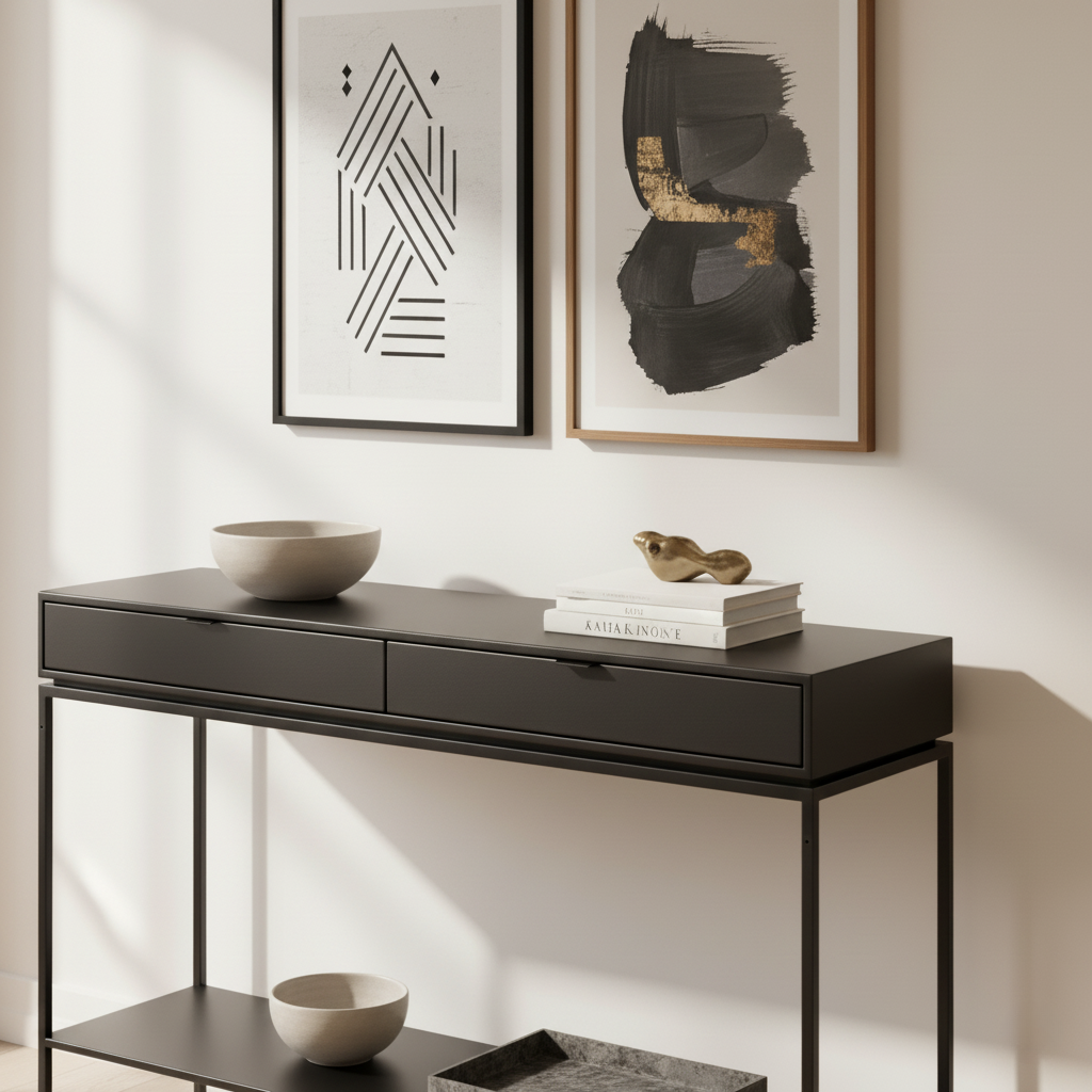 Precio de ofertaArrimo de metal y Abedul. El Arrimo LUXE cuenta con cajones frontales de abedul con tinte negro, barniz Milesi y patas finas de metal que le aportará una mezcla de carácter y ligereza a tu interior.