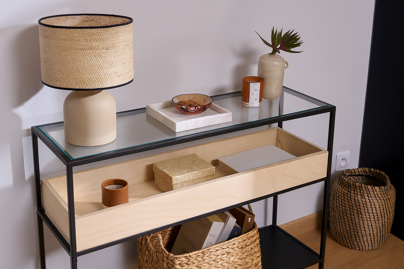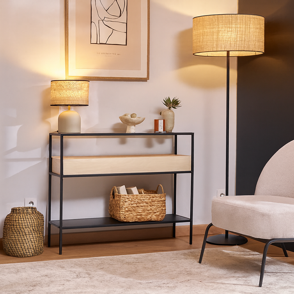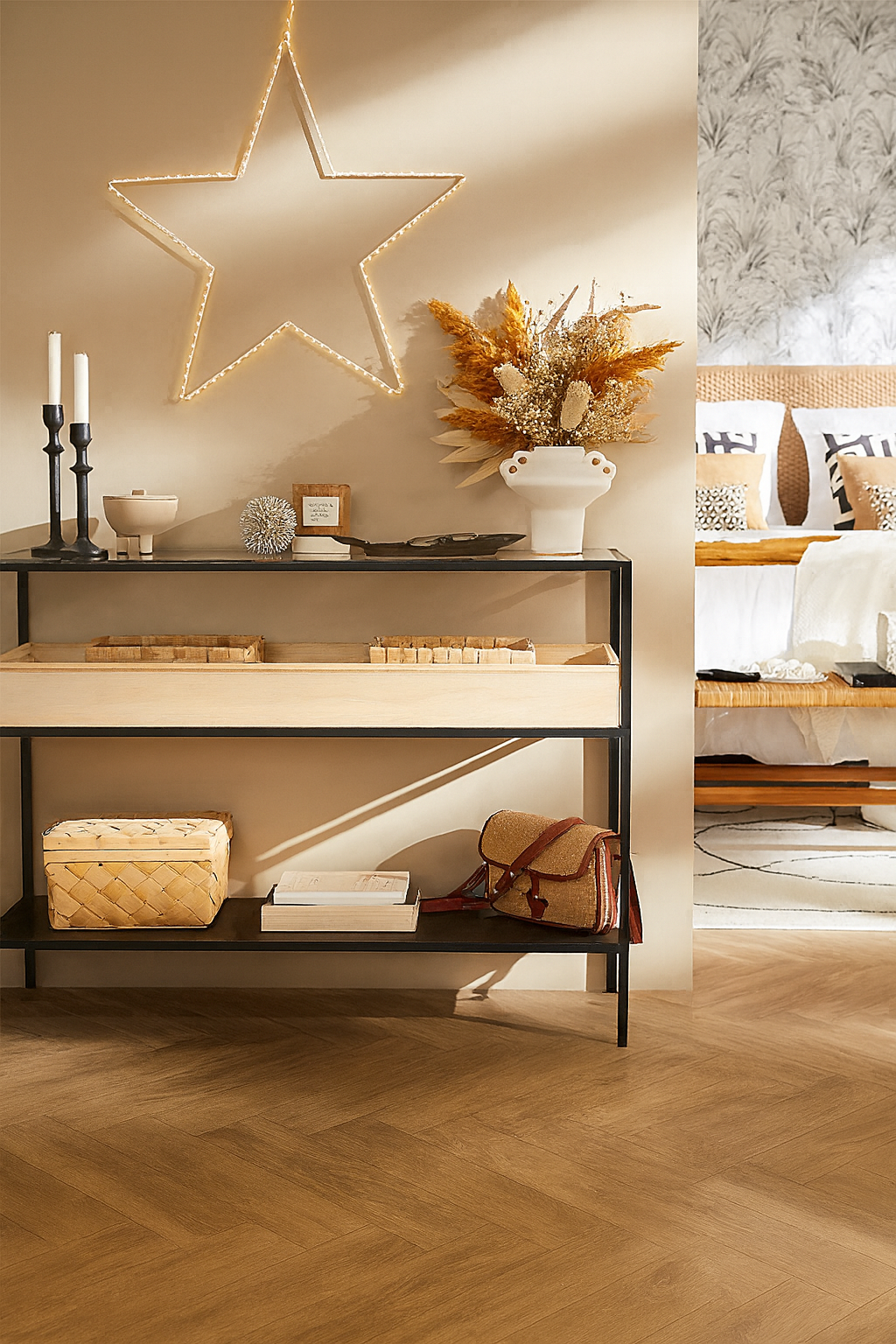 Su formato de 100 x 30 x 78 cm permite decorar, organizar y guardar con estilo: libros, accesorios, plantas u objetos decorativos encuentran su lugar de manera natural.