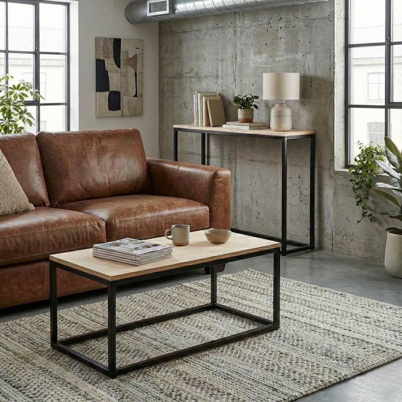 Diseñados para los amantes del estilo industrial y nórdico, ambos muebles dialogan entre sí a través de líneas rectas y depuradas. El arrimo es la pieza clave para dar una bienvenida inolvidable en tu entrada, mientras que la mesa de centro se convierte en el corazón de tu sala de estar, aportando una superficie amplia y resistente.
