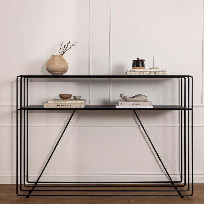 Precio de ofertaELEGANCIA EN SU MEJOR FORMA. El ARRIMO VARA, fabricado con metal de alta calidad, te cautivará con su diseño estilizado y abierto, combinando a la perfección funcionalidad y sofisticación. Este moderno y minimalista aparador es ideal tanto para el recibidor o sala de estar, como para la cocina, brindándote amplio espacio en sus dos estantes para exhibir tus elementos decorativos y objetos de uso diario.