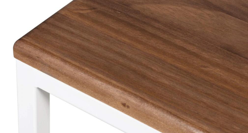 Este producto se compone de una base de perfil de acero al carbón el cual lleva pintura electrostática, lo que entrega mayor durabilidad. Por otro lado, su cubierta es de Pino Alistonado Insigne de 18 mm la cual lleva tinte Nogal Tundra Milesi.
