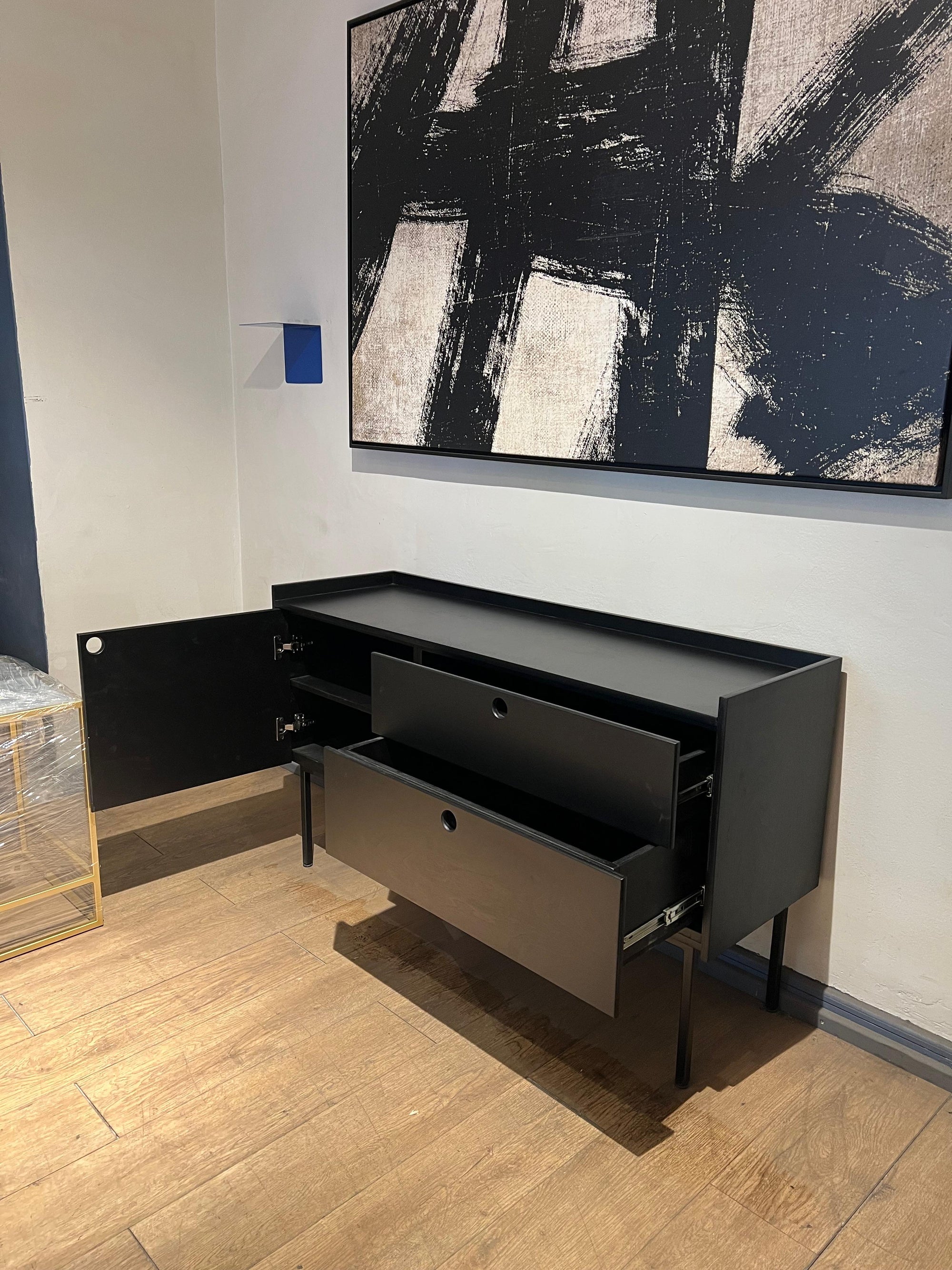 El Buffet Black con Cajones Skinwood ofrece un diseño moderno y funcional, ideal para espacios de comedor o living con carácter contemporáneo.