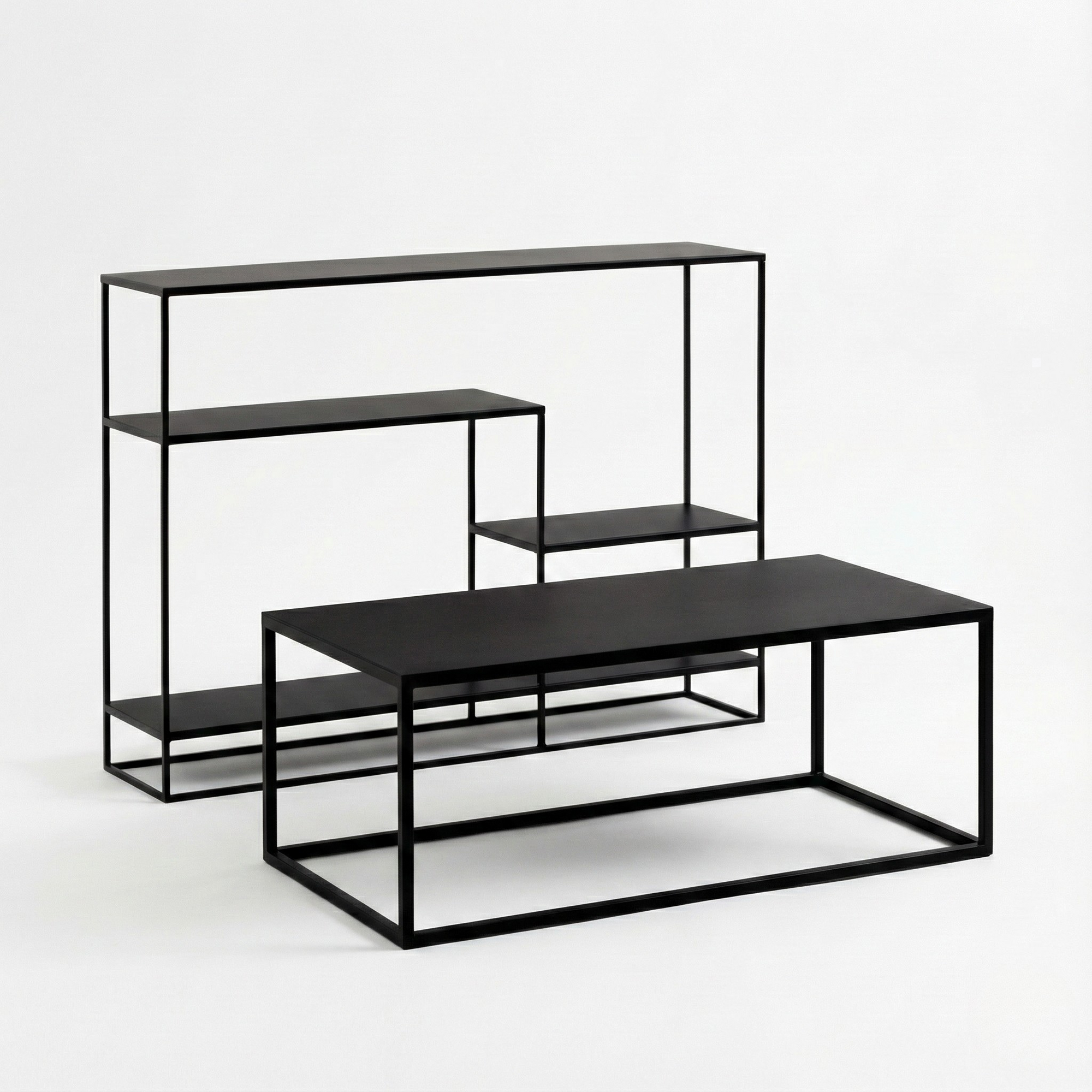 Lleva la estética del loft neoyorquino directamente a tu hogar con este bundle exclusivo de Kallfu. Hemos seleccionado dos piezas que definen el estilo industrial moderno: la pureza de las líneas rectas y la fuerza del acero negro mate.