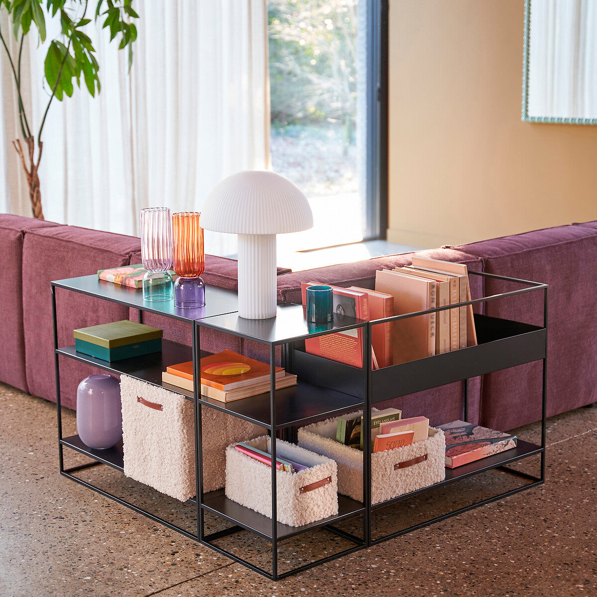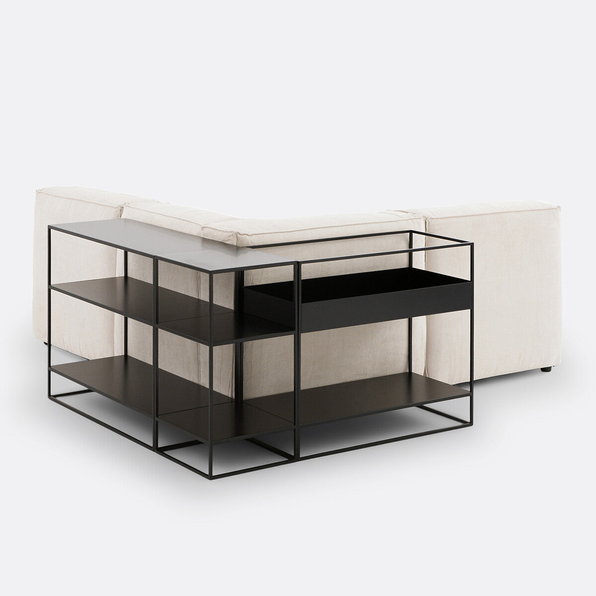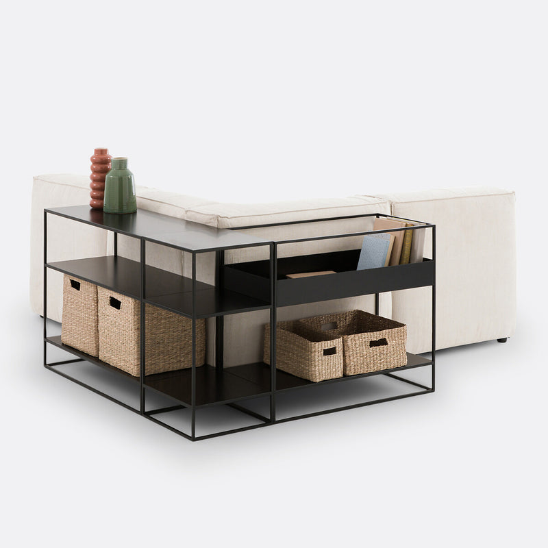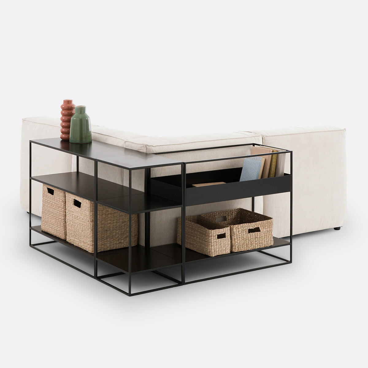 Puede utilizarse como mueble tras sofá, estante de apoyo o incluso como pequeña consola, adaptándose a distintos espacios gracias a su formato modular.