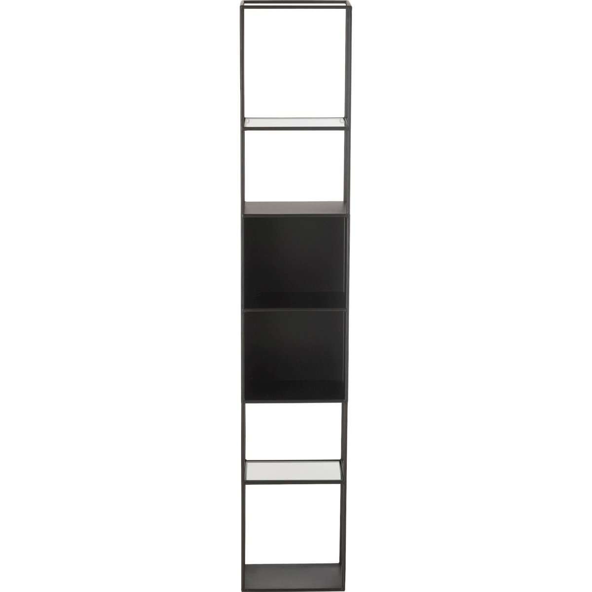Ideal para living, entrada u oficina, permite organizar libros, adornos y objetos de diseño sin recargar el espacio. Su formato vertical aprovecha la altura y encaja fácilmente en ambientes modernos o industriales.