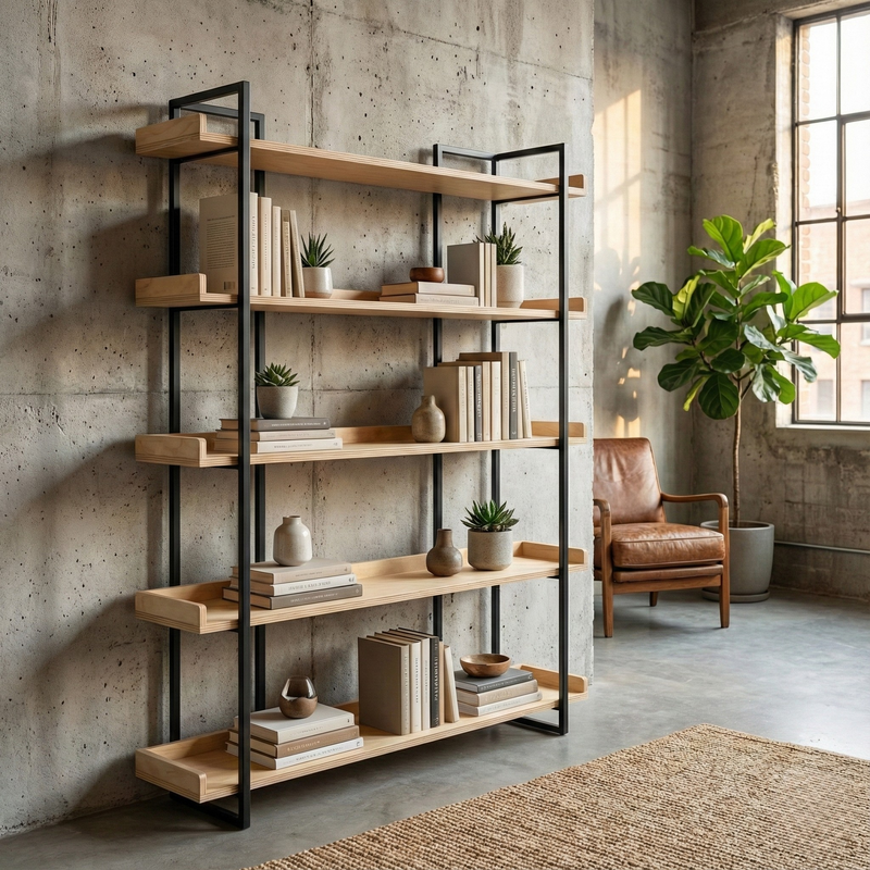 Recomendación: Combínala con otros muebles de la línea MIMA o piezas de acero negro para crear una composición moderna y coherente. Perfecta para espacios amplios y también para departamentos donde se busca maximizar la verticalidad sin sobrecargar.