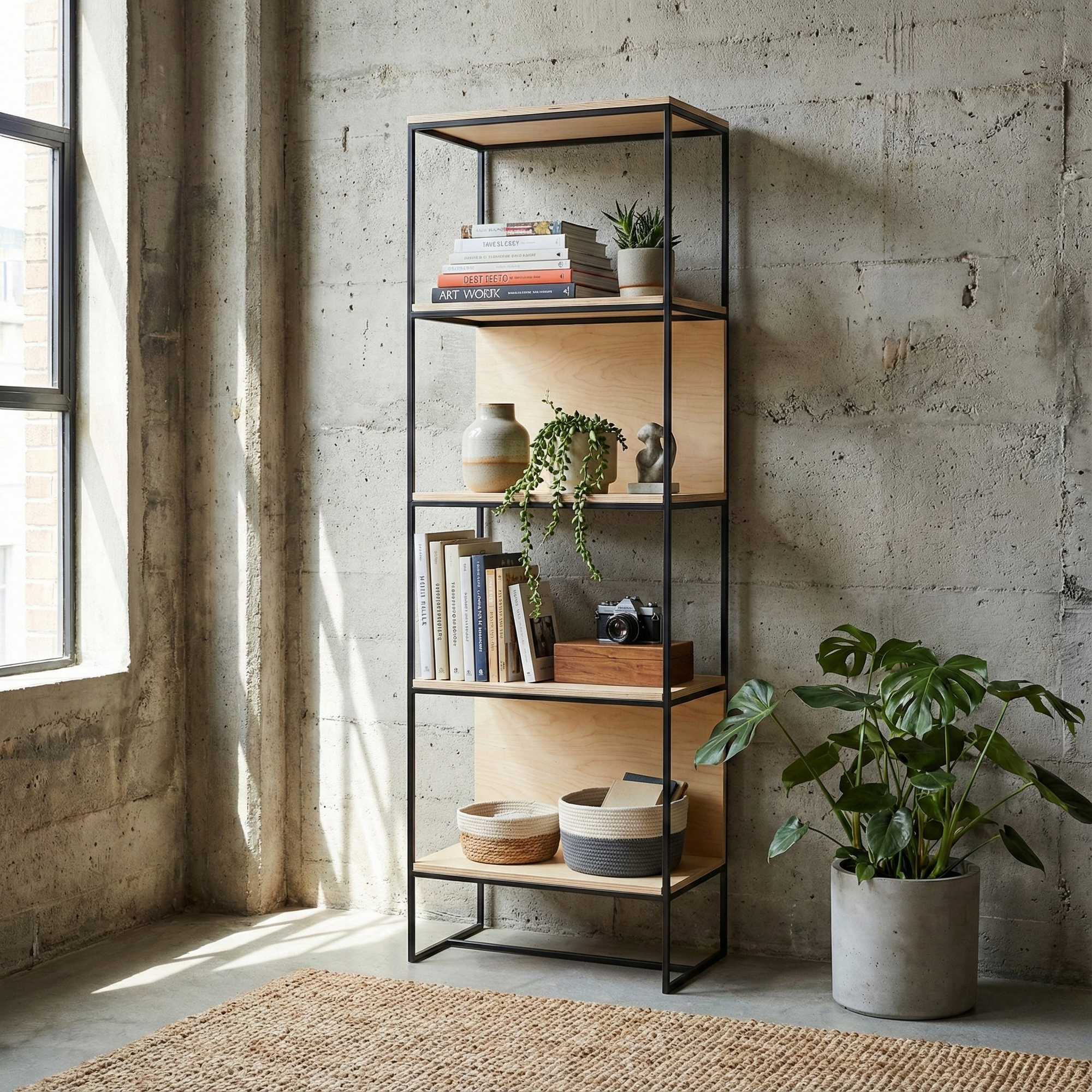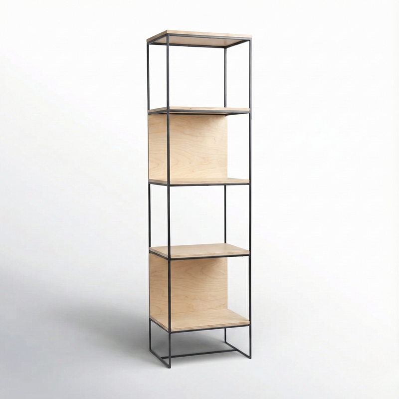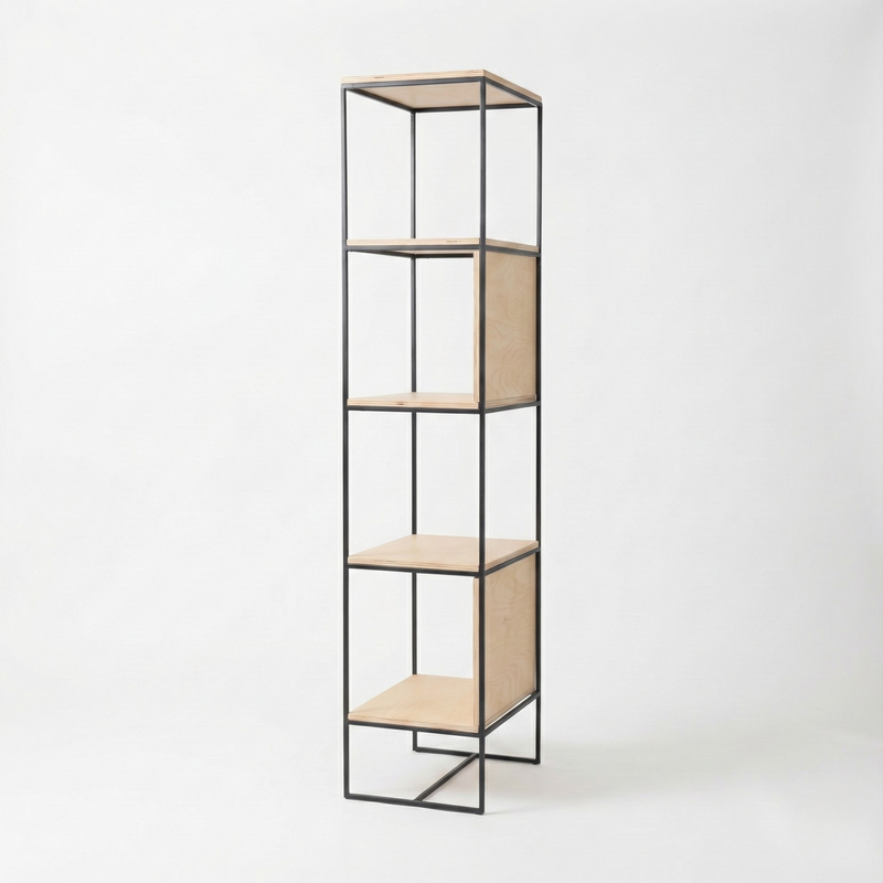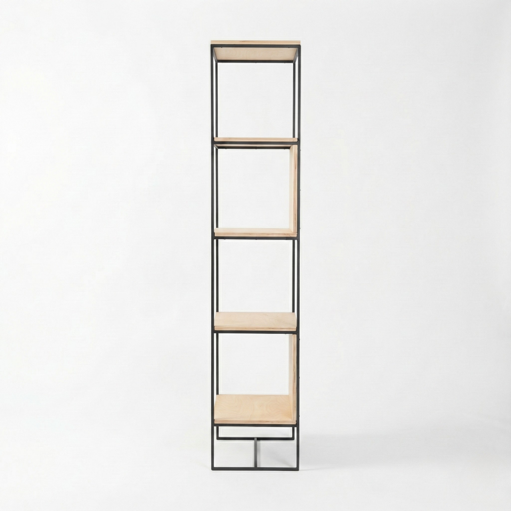 Su diseño vertical y geométrico es ideal para maximizar espacios reducidos, manteniendo una presencia liviana y moderna. La disposición abierta permite exhibir libros, plantas, objetos decorativos o piezas de colección sin saturar visualmente el ambiente.