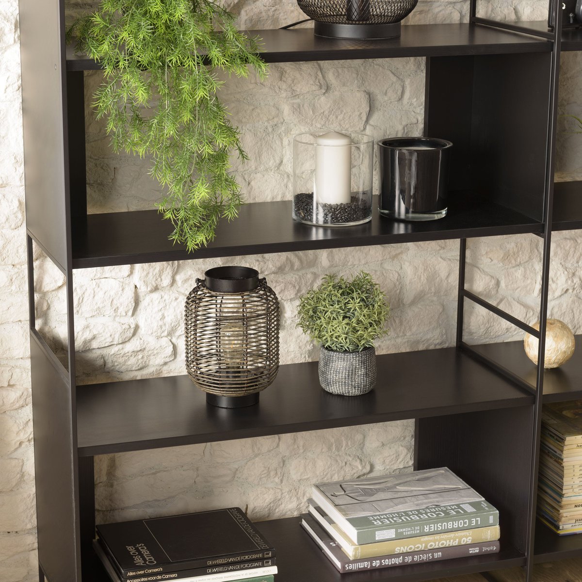 Su diseño minimalista y modular permite organizar libros, objetos decorativos o plantas, aportando orden y carácter a cualquier ambiente contemporáneo.