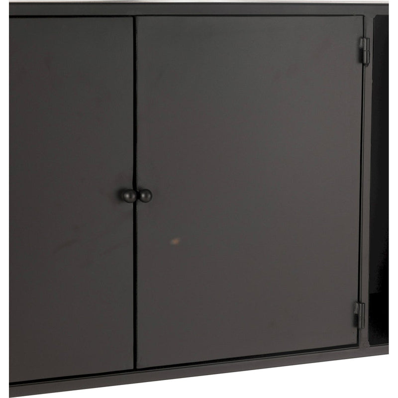 El módulo cerrado central ofrece espacio de almacenamiento oculto, mientras que los estantes superiores e inferiores aportan ligereza visual gracias a sus cubiertas de vidrio transparente. Una fusión perfecta entre funcionalidad, diseño y durabilidad.