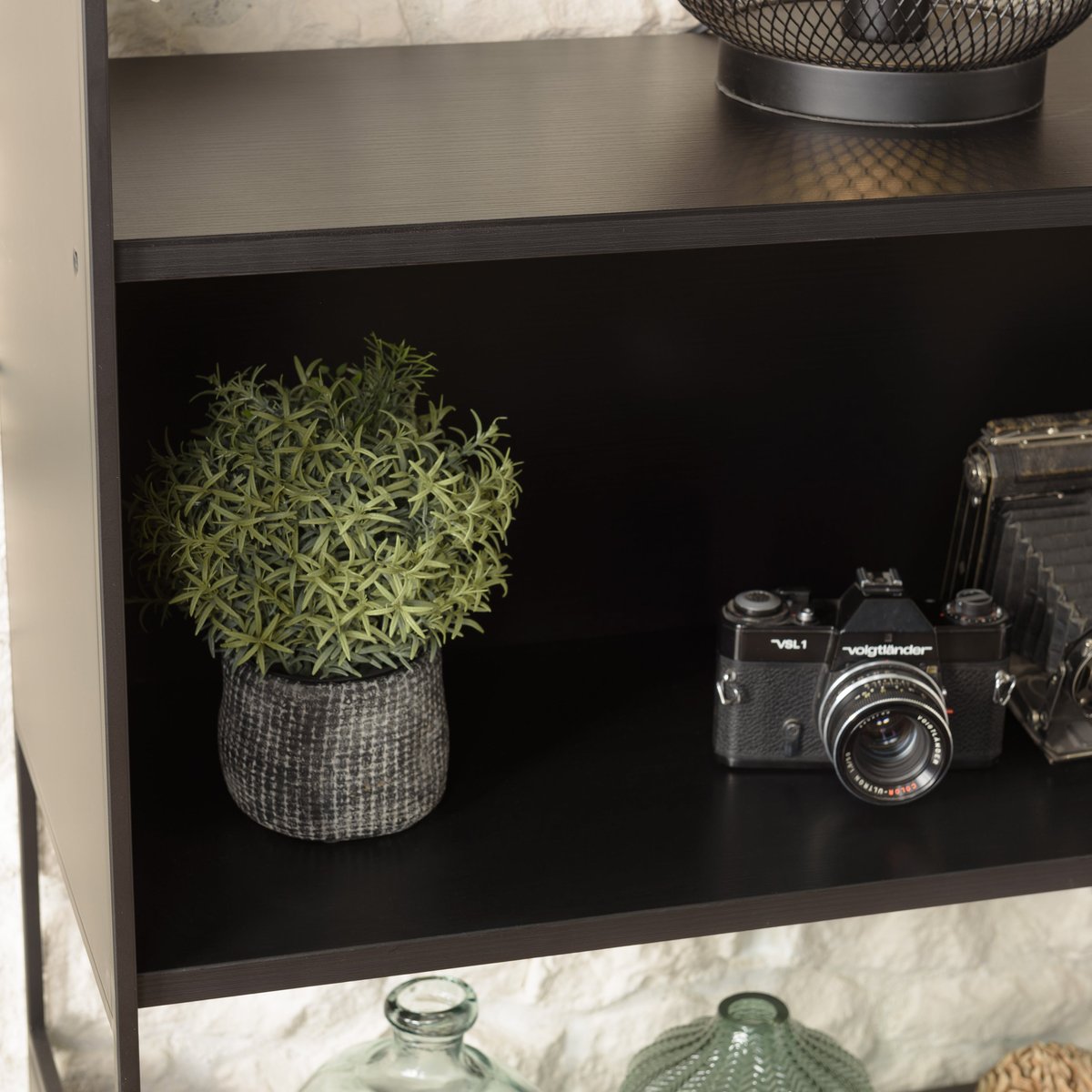 Ideal para organizar libros, objetos decorativos o plantas, integrándose de forma armónica en espacios contemporáneos como livings, comedores u oficinas.