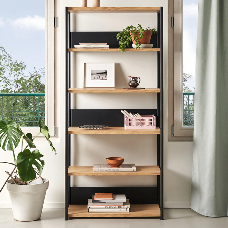 Fabricado en Chile con acero electropintado y cubiertas de madera plywood de abedul, este librero ofrece un estilo moderno y atemporal, además de gran resistencia y durabilidad.