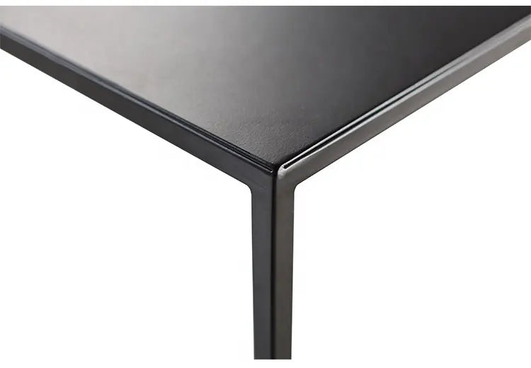 La estructura de esta mesa está cuidadosamente construida con perfil de acero de 15 x 15 mm, lo que le confiere una sensación de ligereza y apertura. La parte superior está hecha de una lámina de acero de 1,5 mm de grosor, agregando durabilidad y resistencia al diseño.