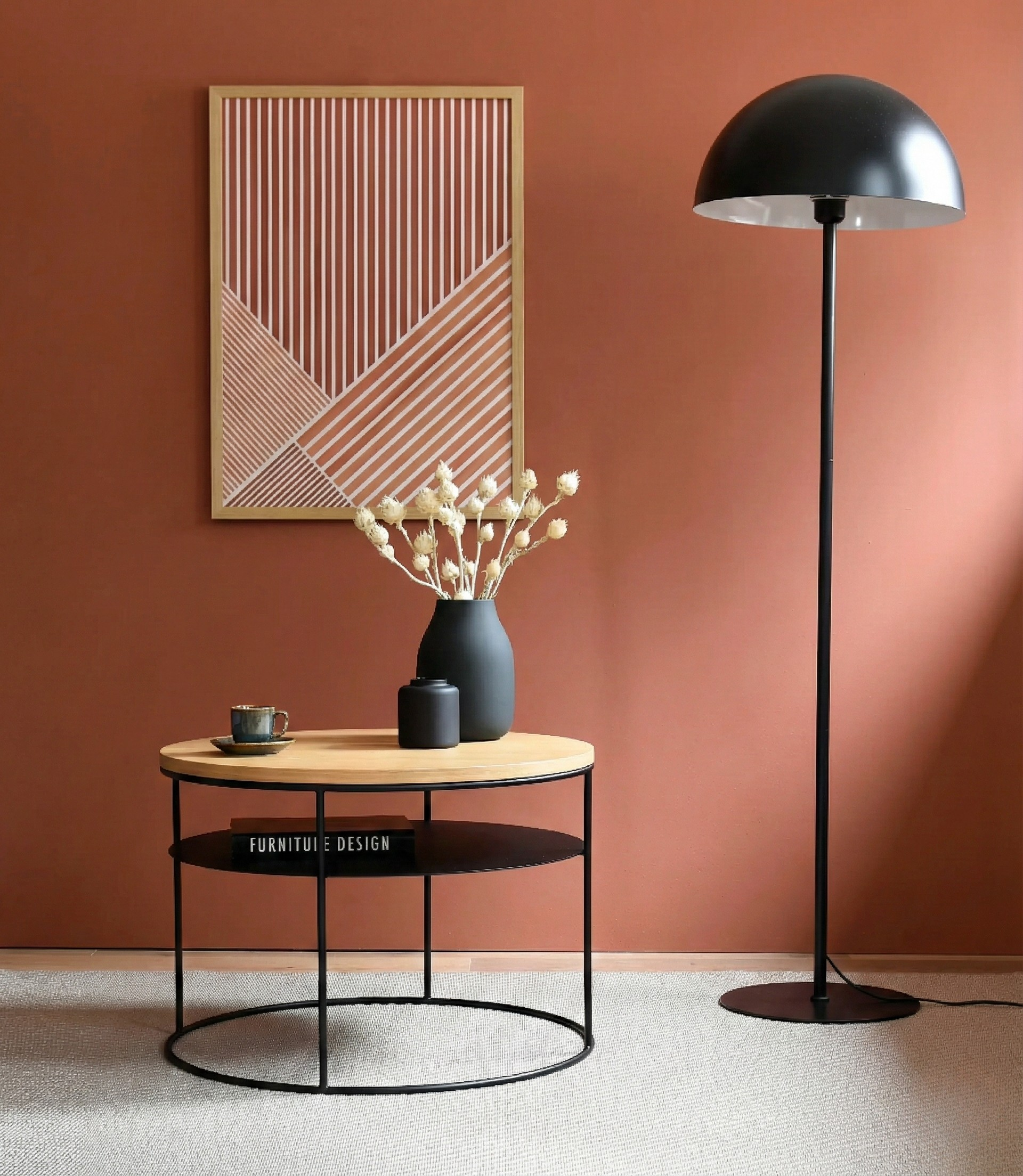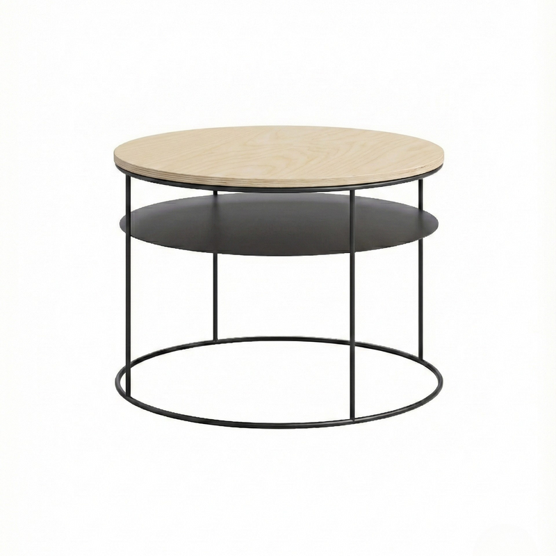 Fabricada en plywood de abedul ABEDUL, esta mesa incorpora una repisa inferior metálica, ideal para organizar libros, revistas u objetos decorativos, manteniendo la superficie principal despejada. La estructura de acero electropintado negro aporta estabilidad y carácter, reforzando el contraste material propio del lenguaje Kallfu.