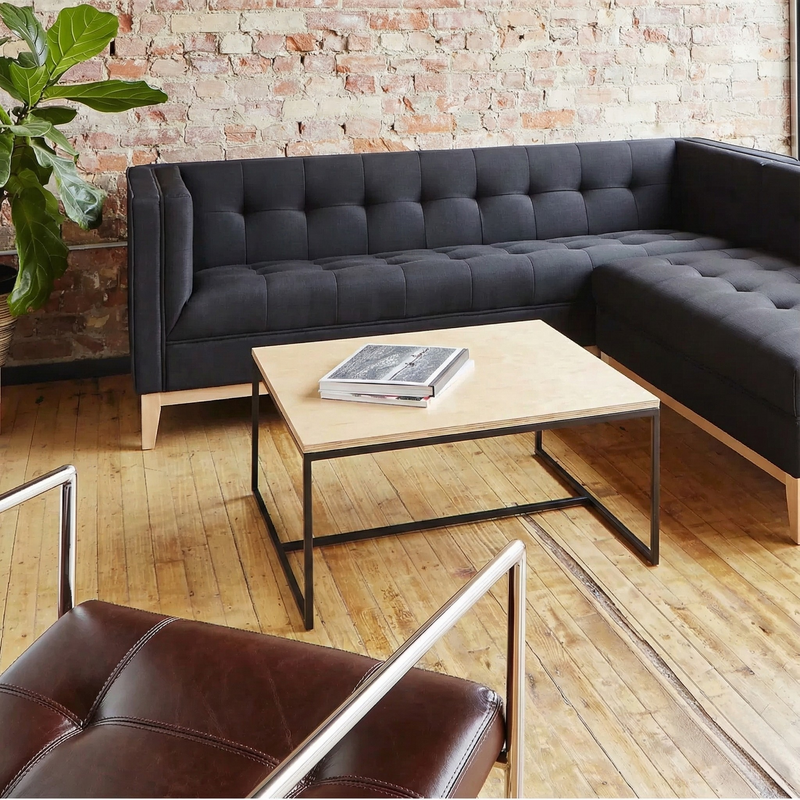 Su formato cuadrado permite ubicarla al centro del espacio, junto a sofás modulares o sillones amplios, optimizando la circulación y ofreciendo una superficie generosa para uso cotidiano.
