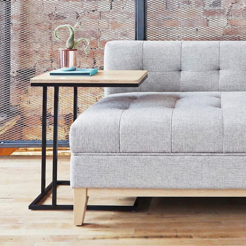 Su diseño tipo “C” permite deslizarla sobre sofás o sillones, convirtiéndola en un apoyo perfecto para trabajar con el notebook, dejar una bandeja, libros o dispositivos. Las líneas rectas y proporciones estilizadas la hacen ideal para living, estudio, dormitorio, sala de estar u oficina en casa, optimizando espacios pequeños y manteniendo una estética ordenada.