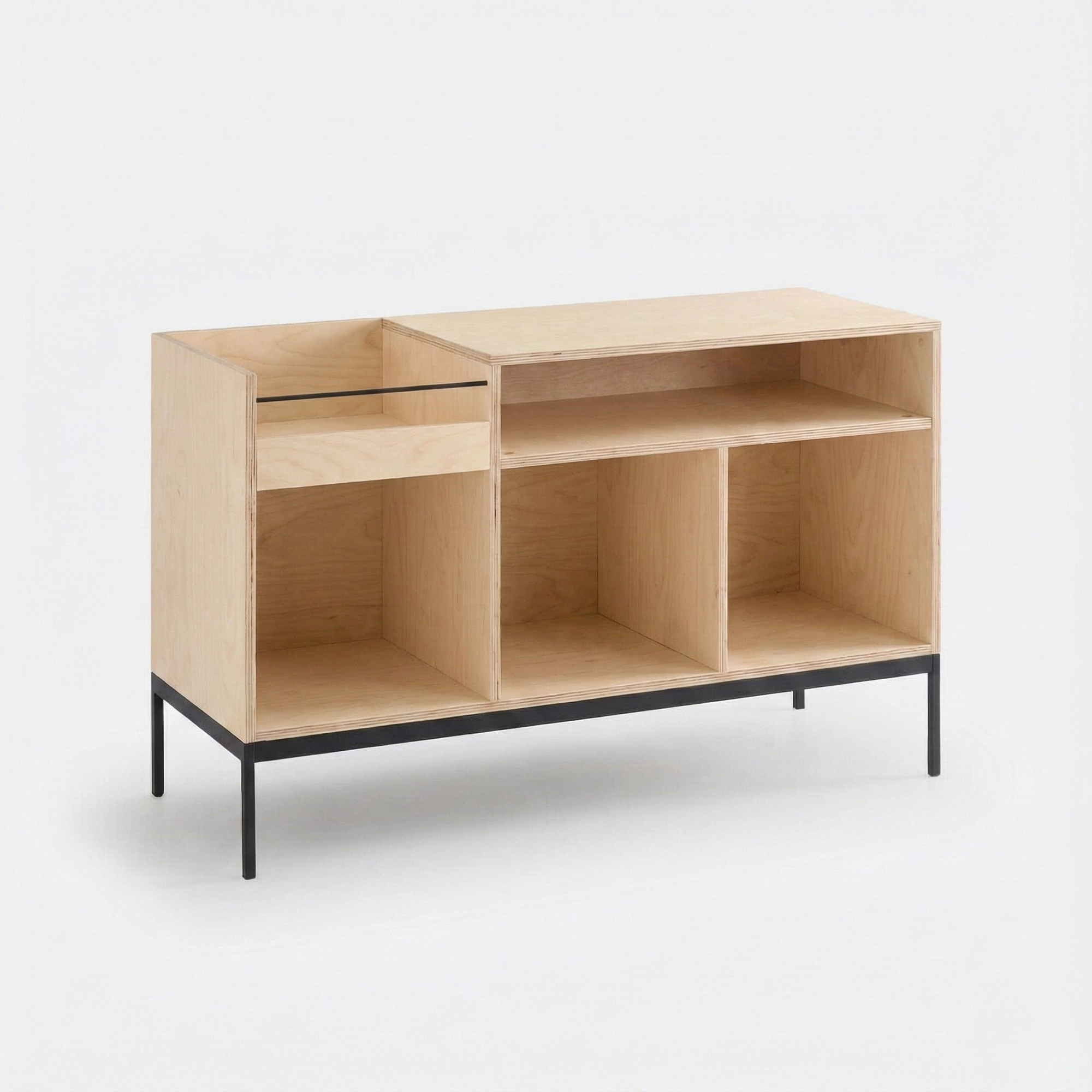 El Plywood de abedul aporta resistencia, estabilidad y una estética limpia, mientras que el acero negro suma un contraste moderno que eleva cualquier espacio.