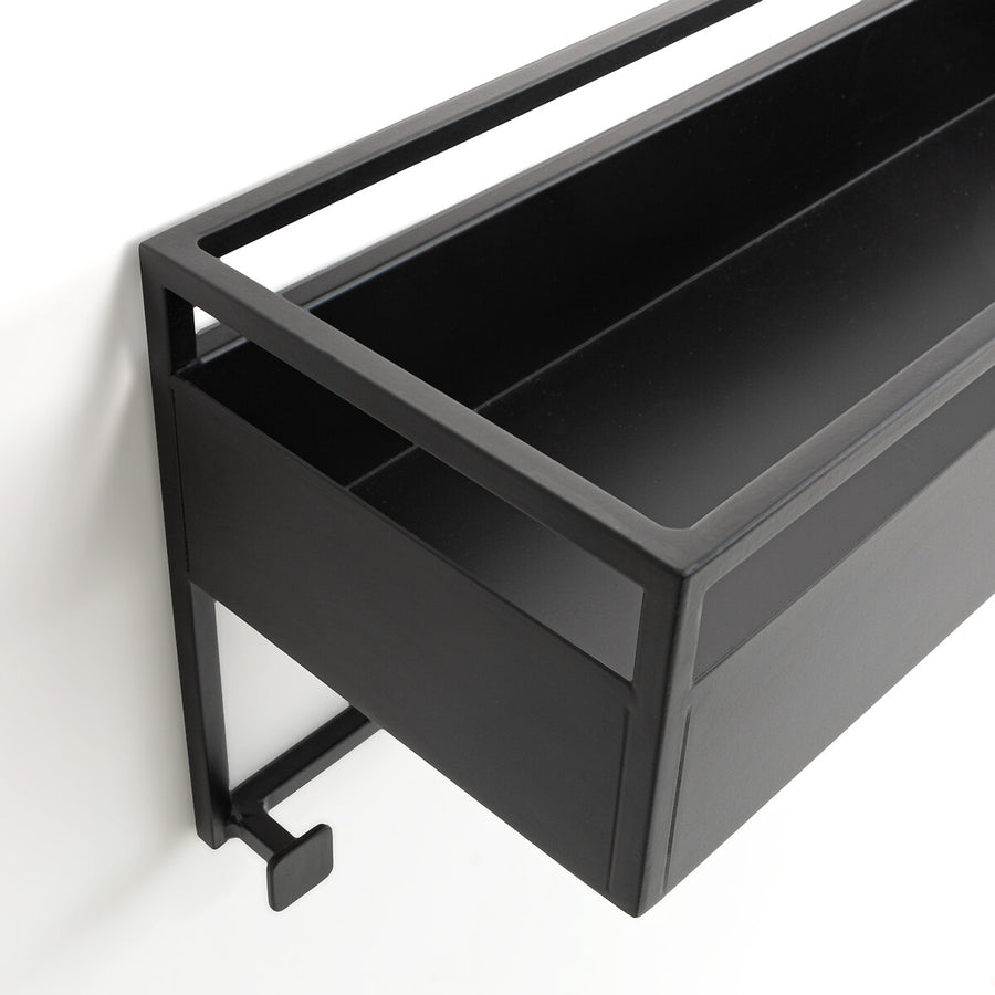 El repisero mural Grid combina estructura y ligereza en una pieza de acero negro electropintado que ordena y decora al mismo tiempo.
