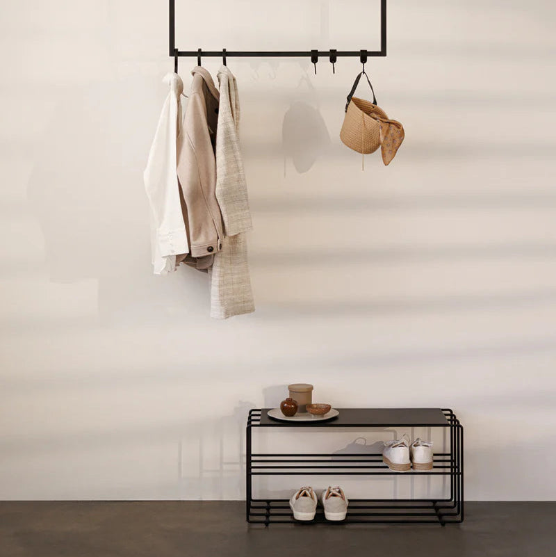 El diseño y la materialidad del zapatero de metal crean un carácter loft que recuerda al estilo industrial moderno, pero que puede integrarse en cualquier habitación y estilo de decoración según el color y la combinación.